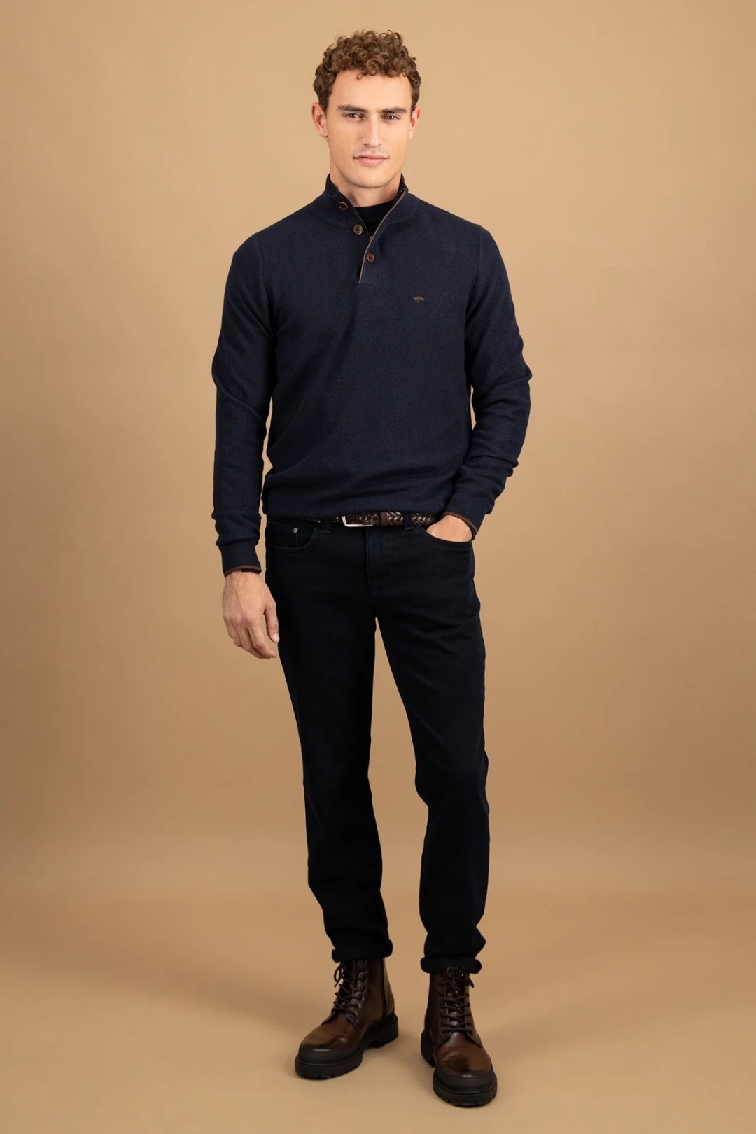 FYNCH HATTON KNITWEAR BUTTTON STRUCTURE-ZIP NECK - NAVY BLUE