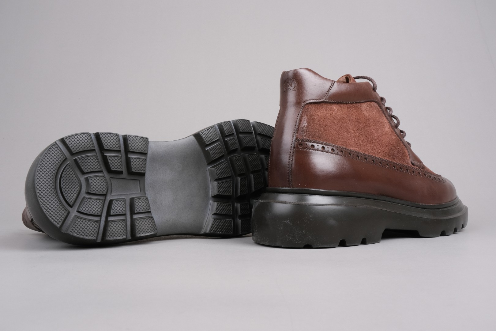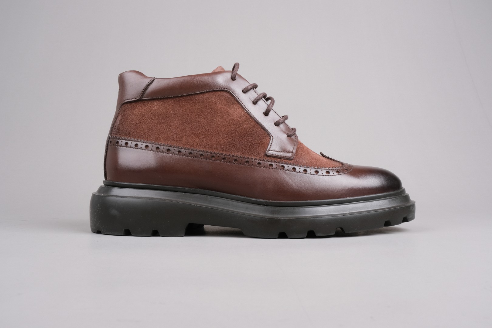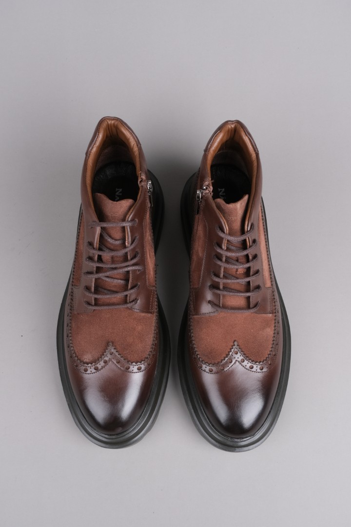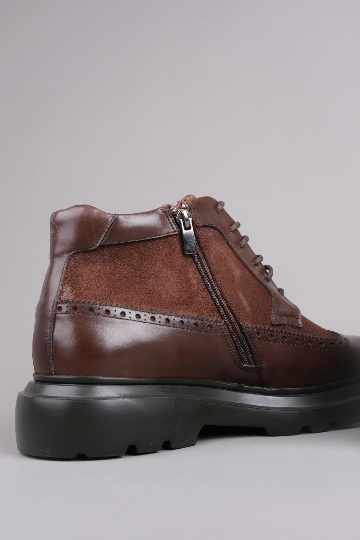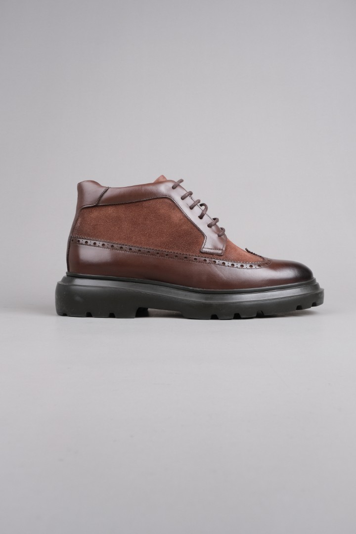 BROGUE LEATHER/SUEDE BOOTS - BROWN
