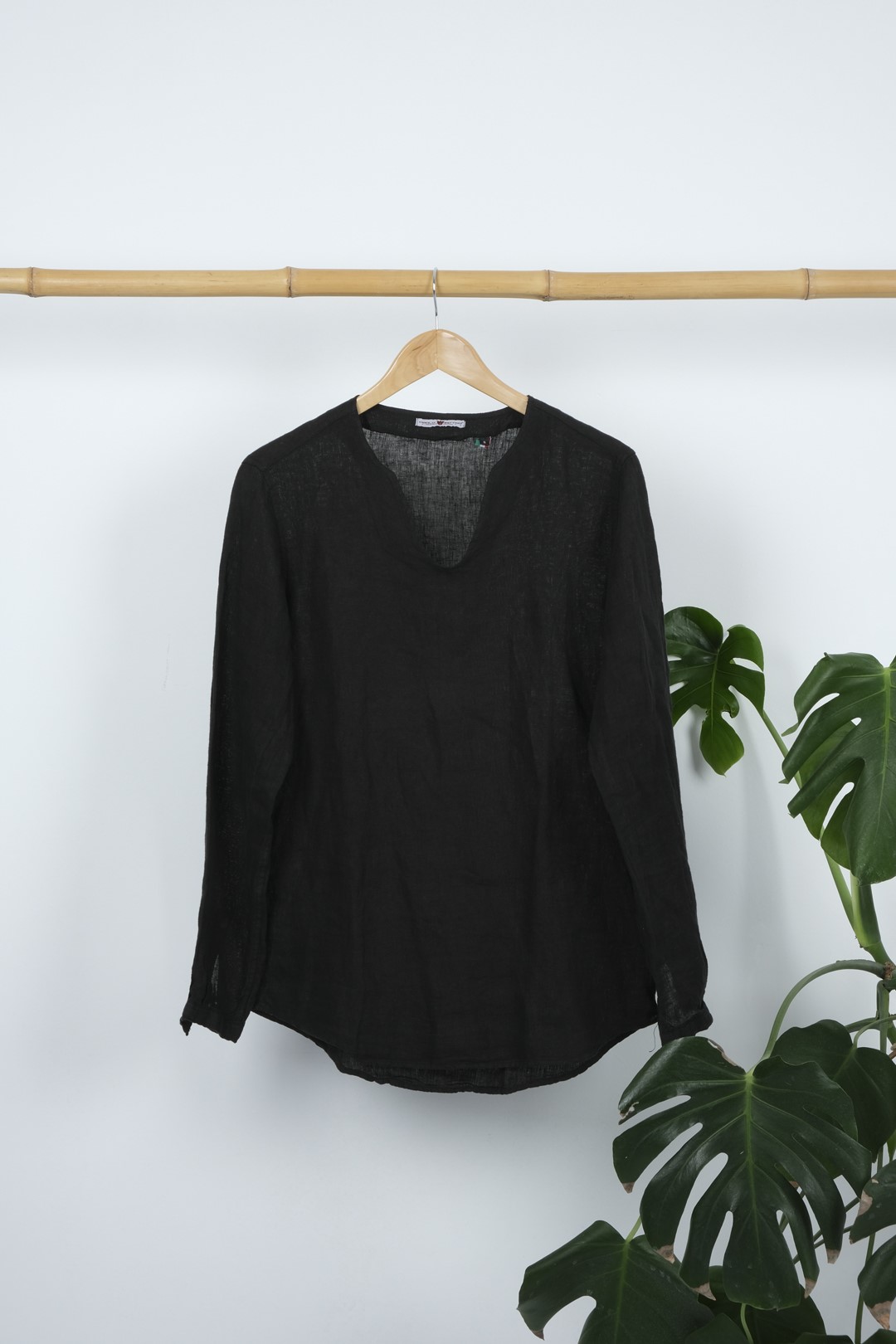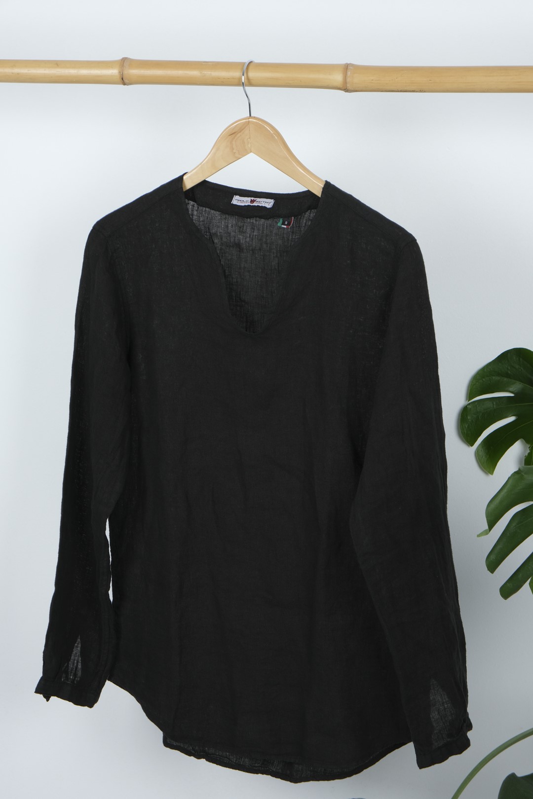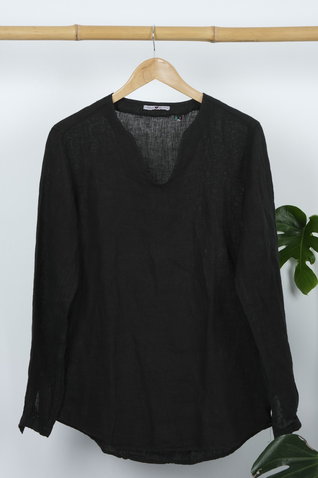 PAOLO DI MATEO ΠΟΥΚΑΜΙΣΑ V-NECK ΛΙΝΗ - BLACK