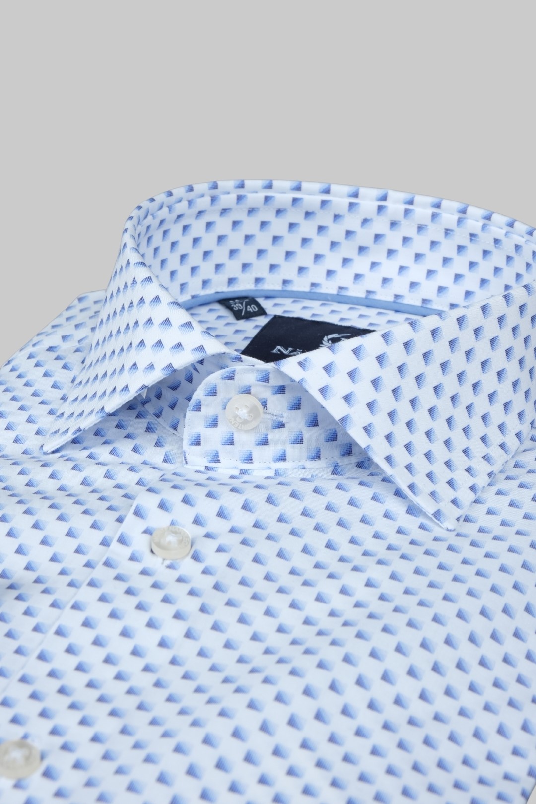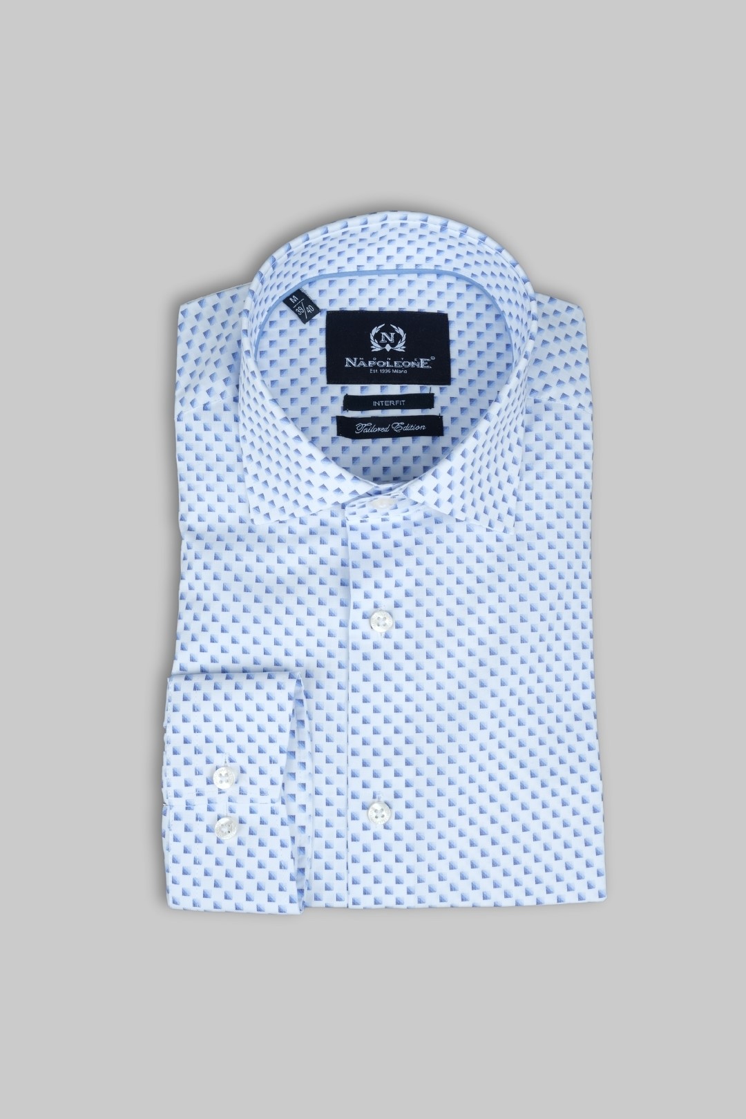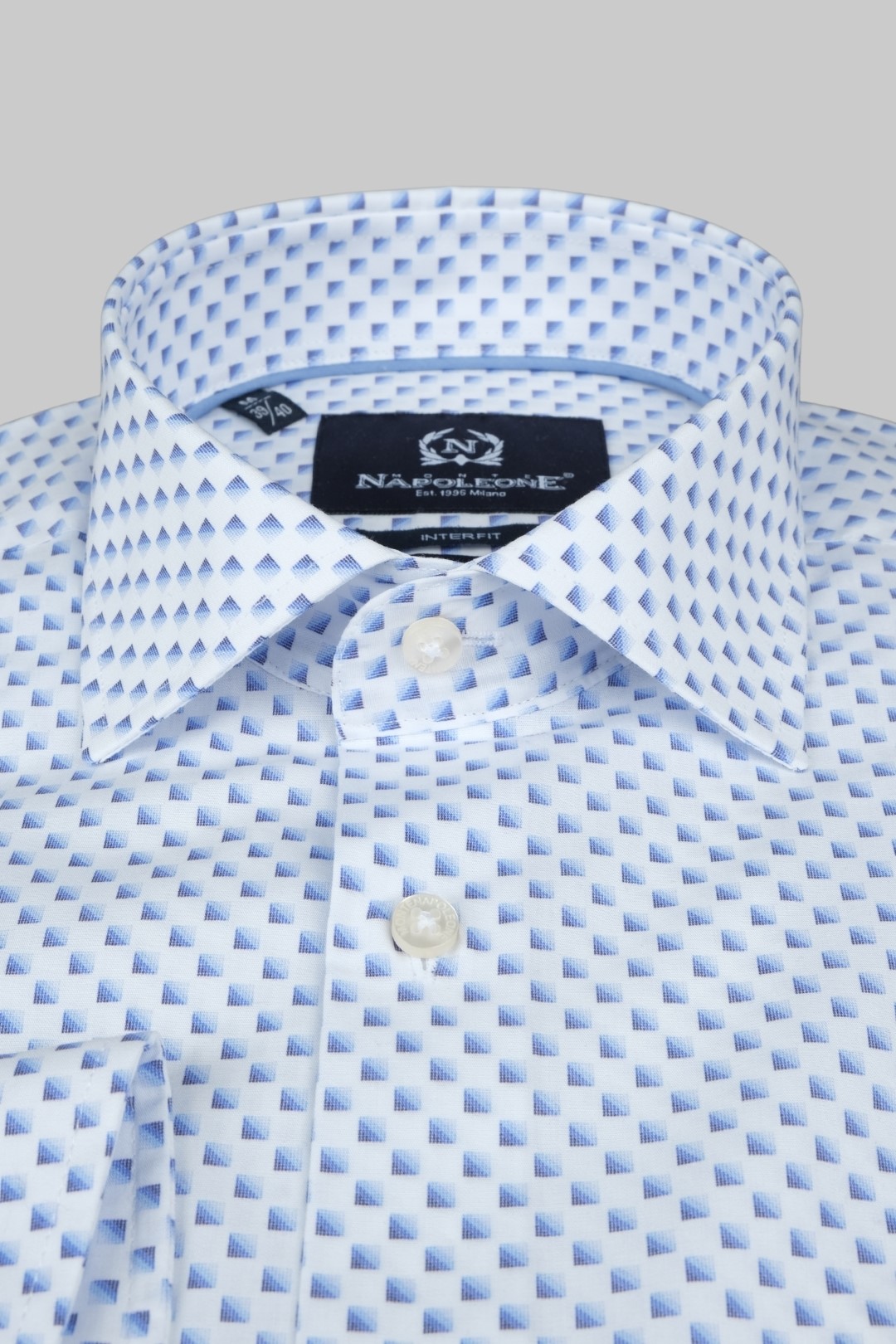 NAPOLEONE ΠΟΥΚΑΜΙΣΟ ΜΕ ΣΧΕΔΙΟ ΤΕΤΡΑΓΩΝΑΚΙ INTERFIT - WHITE BLUE