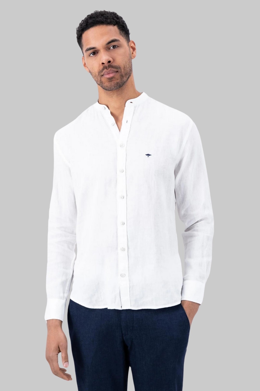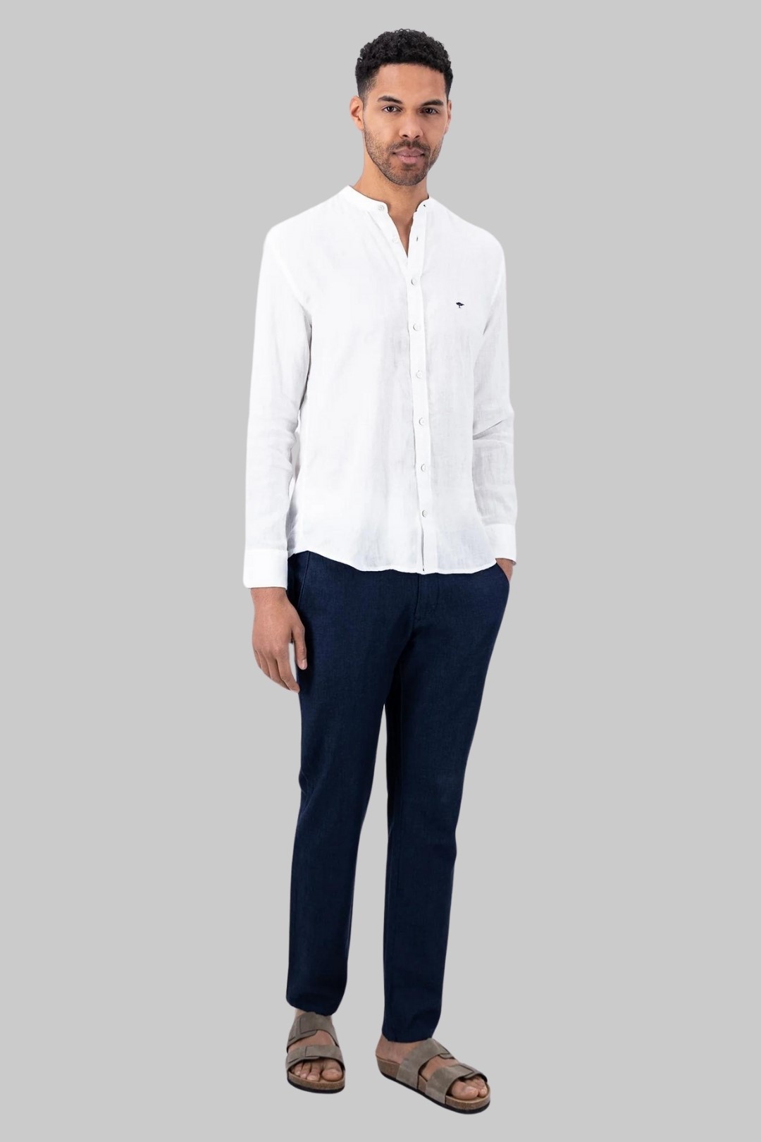 Το λινό πουκάμισο από τη Fynch-Hatton σε μοντέρνο σχέδιο εντυπωσιάζει με την ποιότητα του και την απλή του εμφάνιση.