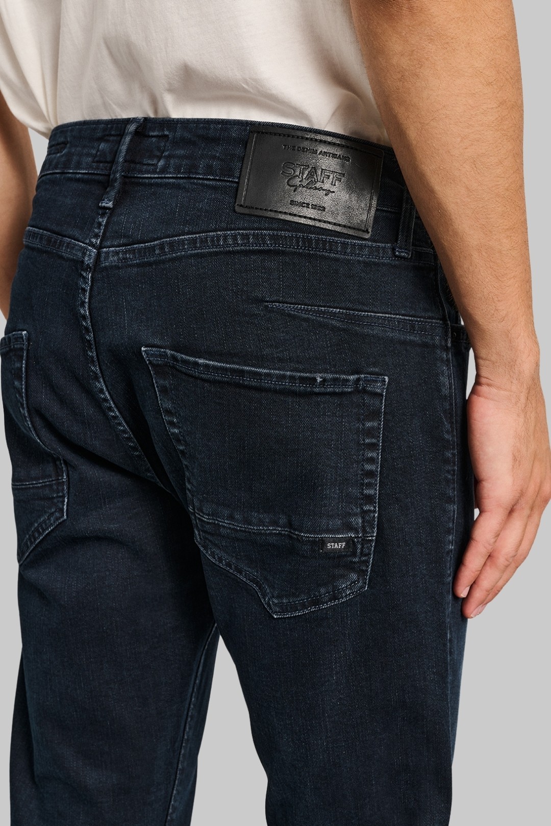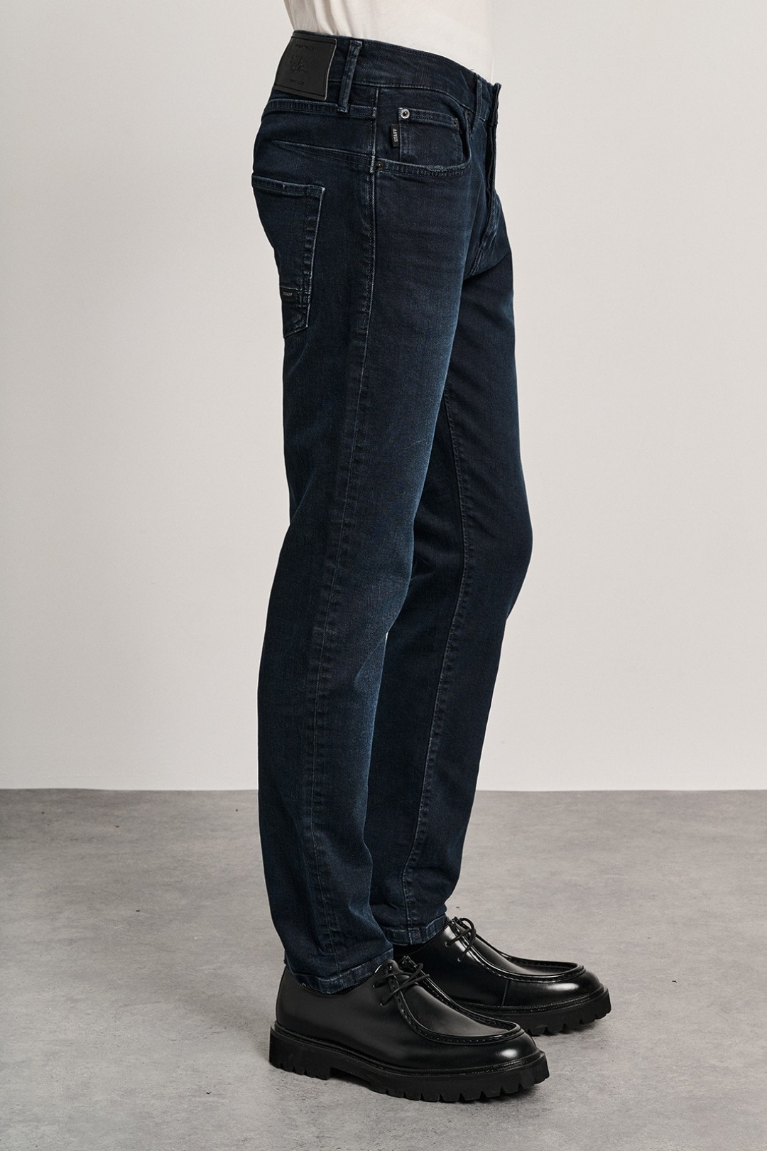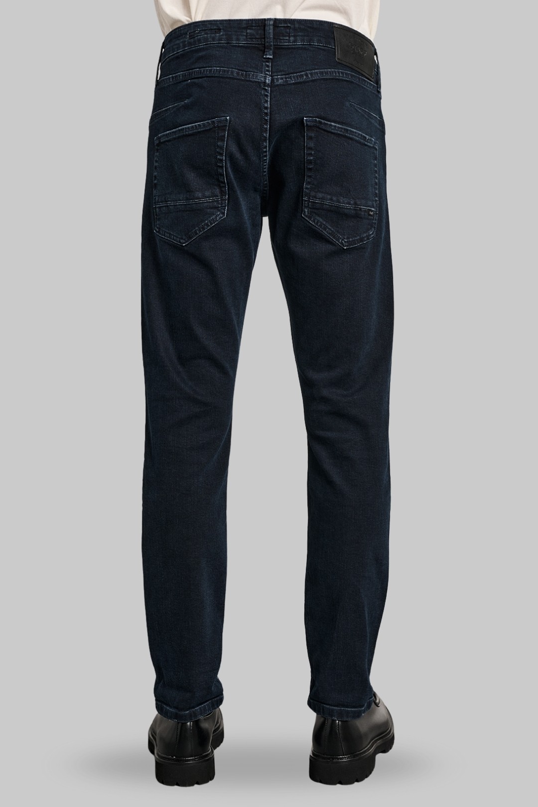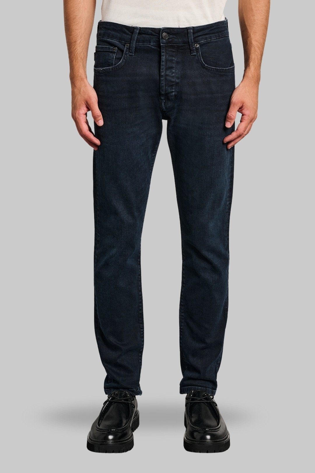 - Simon ανδρικό τζιν παντελόνι Blue Black Denim σε στενή γραμμή.