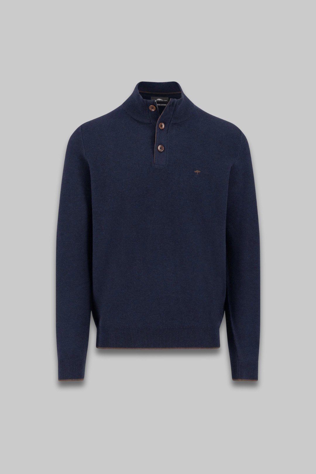 FYNCH HATTON KNITWEAR BUTTTON STRUCTURE-ZIP NECK - NAVY BLUE - 6