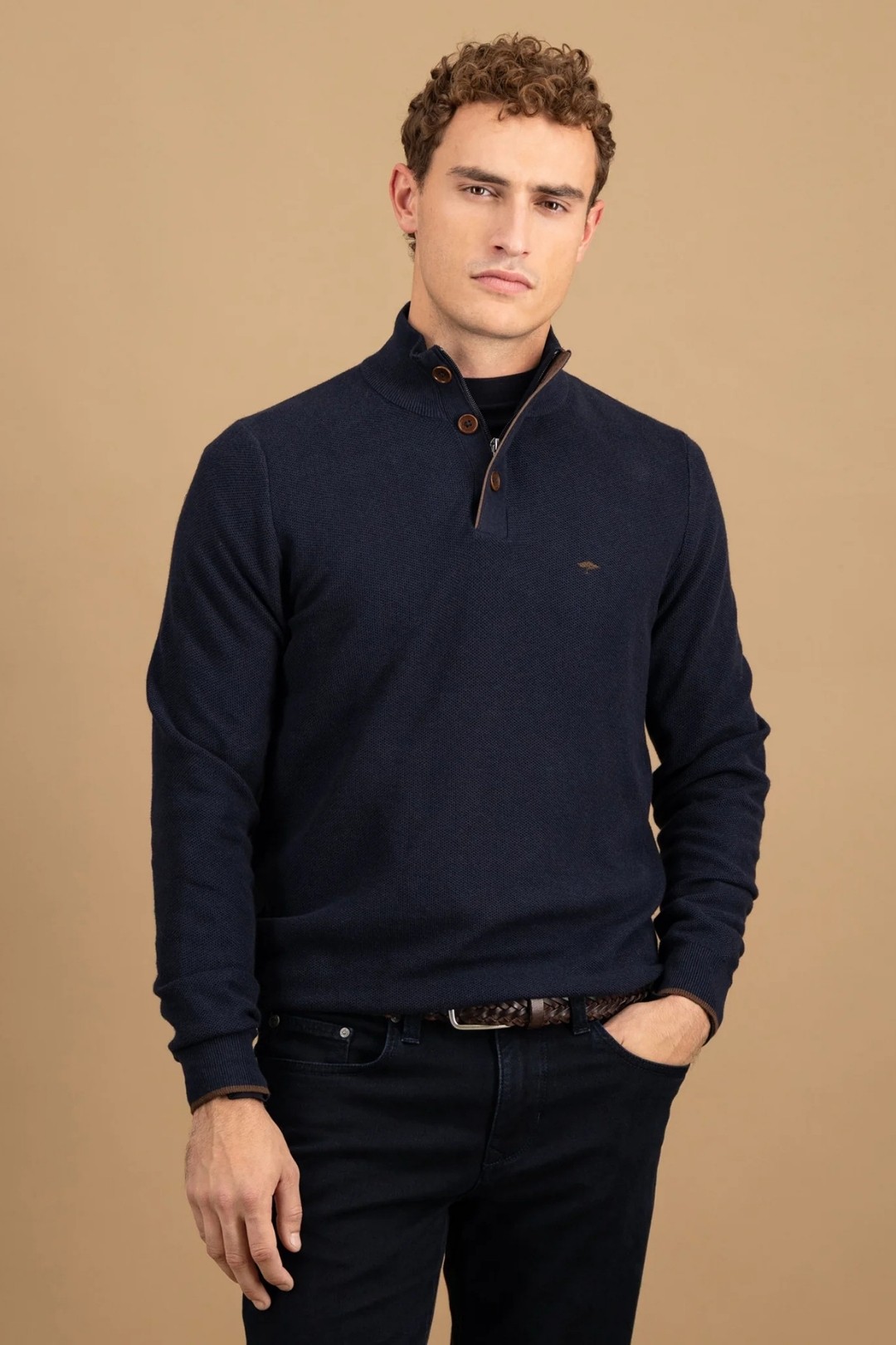 FYNCH HATTON KNITWEAR BUTTTON STRUCTURE-ZIP NECK - NAVY BLUE