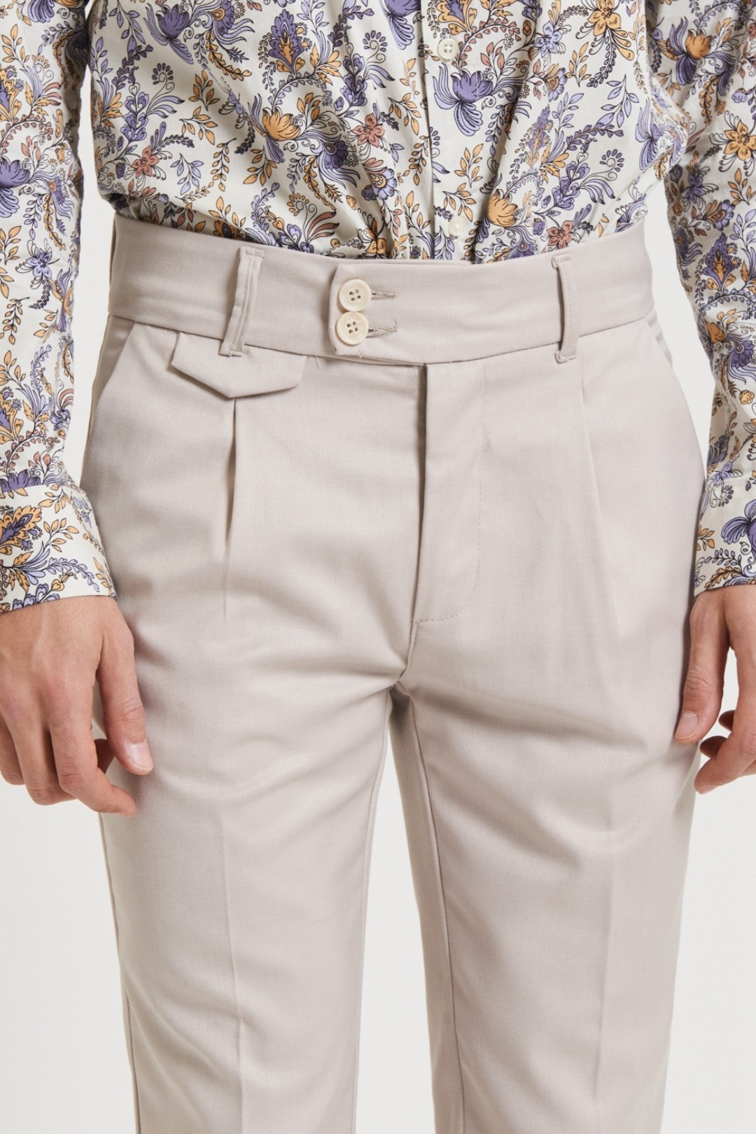 CHINOS WITH SMALL PLEATS - MASTICE(BEIGE)