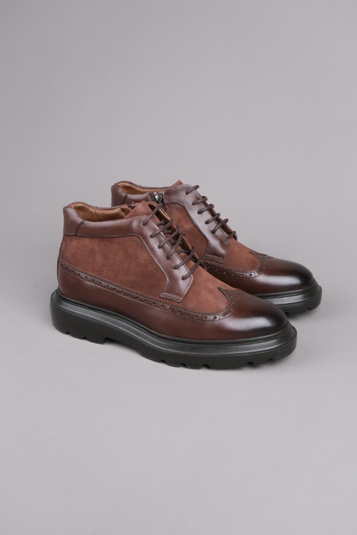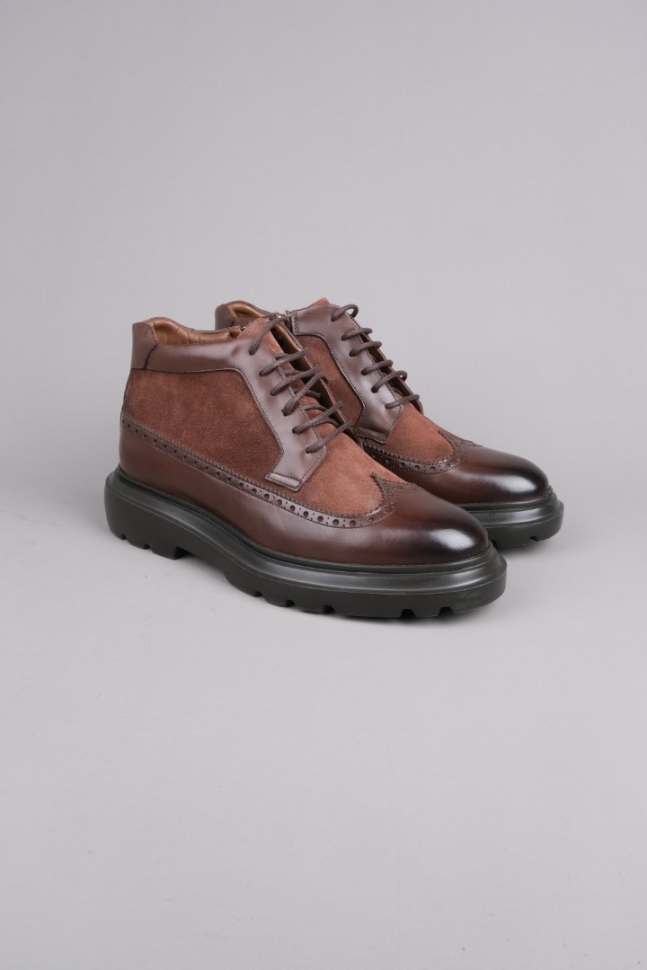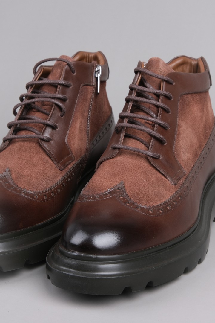 BROGUE LEATHER/SUEDE BOOTS - BROWN