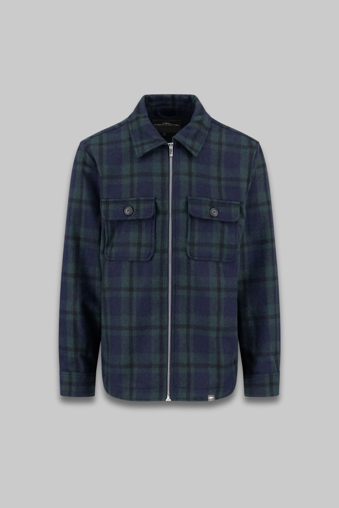 FYNCH HATTON CHECKED OVERSHIRT - NAVY GREEN