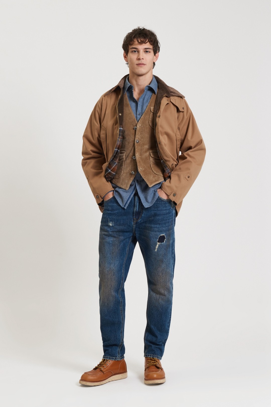 HUNTING JACKET WITH CORDUROY COLLAR - TOBACCO